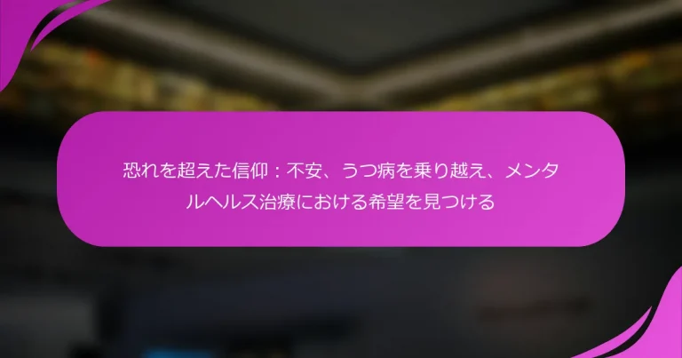 信仰は、レジリエンスを高め、不安を癒し、抑うつを克服する上で重要な役割を果たします。信仰は、感情的な幸福にとって不可欠な希望、目的、コミュニティの支援を提供します。不安と抑うつの共通の症状を理解することで、レジリエンスを育む手助けになります。祈りや瞑想などの信仰に基づく実践は、対処法や帰属意識を育むための独自の戦略を提供します。 信仰はメンタルヘルスのレジリエンスにどのように寄与しますか? 信仰は、希望、目的、コミュニティの支援を提供することによって、メンタルヘルスのレジリエンスを大幅に高めます。信仰は、しばしば不安や抑うつに関連する孤立感を和らげる帰属意識を育みます。祈りや瞑想などの信仰に基づく実践は、ストレスの軽減や感情の調整の改善に関連しています。研究によれば、強い信仰を持つ人々は、不安や抑うつのレベルが低いことが示されています。信仰は、対処メカニズムや人生の課題を理解するための枠組みを提供するからです。信仰コミュニティに参加することも、メンタルウェルビーイングにとって重要な社会的支援を提供します。 信仰に基づく実践の心理的利益は何ですか? 信仰に基づく実践は、レジリエンスの向上、不安の軽減、抑うつの緩和など、重要な心理的利益を提供します。これらの実践は、コミュニティと帰属意識を育むため、メンタルヘルスの改善につながります。研究によれば、信仰に基づく活動に参加している人々は、しばしばストレスのレベルが低く、生活満足度が高いと報告しています。さらに、多くの信仰で一般的な祈りや瞑想は、感情の調整や対処戦略に寄与します。その結果、信仰はメンタルウェルビーイングのための強力なツールとなります。 信仰は個人が不安を克服するのにどのようにサポートできますか? 信仰は、個人に目的とコミュニティの感覚を提供し、不安を大幅に軽減します。レジリエンスを育むことで、信仰はポジティブな対処メカニズムや感情的なサポートを促進します。祈りや瞑想に参加することで、マインドフルネスが高まり、内なる平和が促進されます。研究によれば、精神的な実践はストレスレベルを低下させ、メンタルヘルスの改善に寄与します。このように、信仰は慰めの源としての独自の特性を持ち、不安を克服するための強力なツールとなります。 祈りは不安管理にどのような役割を果たしますか? 祈りは、平和とつながりの感覚を育むことによって、不安管理において強力なツールとして機能します。祈りに参加することで、落ち着きの効果が生まれ、ストレスレベルが低下し、感情的なレジリエンスが促進されます。研究によれば、定期的に祈る人々は、しばしば不安が低く、メンタルヘルスの改善が見られます。祈りのこの独自の特性は、対処メカニズムを強化し、個人がより強い力で課題に立ち向かうことを可能にします。その結果、祈りは信仰を育むだけでなく、不安を克服し、全体的な幸福を育むための支援的な枠組みを育てます。 コミュニティの支援は信仰に基づくレジリエンスをどのように高めますか? コミュニティの支援は、つながりや共有経験を育むことによって、信仰に基づくレジリエンスを大幅に高めます。この支援システムは、困難な時期に孤立感を軽減するための感情的な強さを提供します。同じ信念を持つ他者と関わることで、希望やモチベーションが高まり、不安や抑うつを克服するために不可欠です。さらに、共同祈りやグループ活動は、育成的な環境を作り出し、ポジティブなメンタルヘルスの結果を強化します。研究によれば、信仰に基づくコミュニティに関与する人々は、レジリエンスのレベルが高く、不安や抑うつの発生率が低いと報告しています。 抑うつ治療において信仰が提供できる独自のアプローチは何ですか? 信仰は、コミュニティの支援を育み、マインドフルネスを促進し、目的を高めることによって、抑うつ治療において独自のアプローチを提供します。これらの要素は、レジリエンスを強化し、慰めを提供します。信仰に基づくグループを通じたコミュニティの関与は、孤立感を軽減する支援ネットワークを作ります。信仰に根ざしたマインドフルネスの実践は、現在の瞬間への意識を促し、個人が不安を管理するのを助けます。さらに、信仰から得られる目的意識は、個人が癒しを求め、抑うつを克服するための動機を与えることができます。これらのアプローチを統合することで、深い感情的および精神的な癒しをもたらすことができます。 聖典の読書は気分や心の状態にどのように影響しますか? 聖典の読書は、慰めを提供し、レジリエンスを育むことによって、気分や心の状態を大幅に向上させます。聖なるテキストに触れることで、希望や目的の感覚を通じて不安を和らげ、抑うつと戦うことができます。研究によれば、定期的な聖典の読書は、感情的な幸福の改善と関連しており、ポジティブな思考パターンを促進